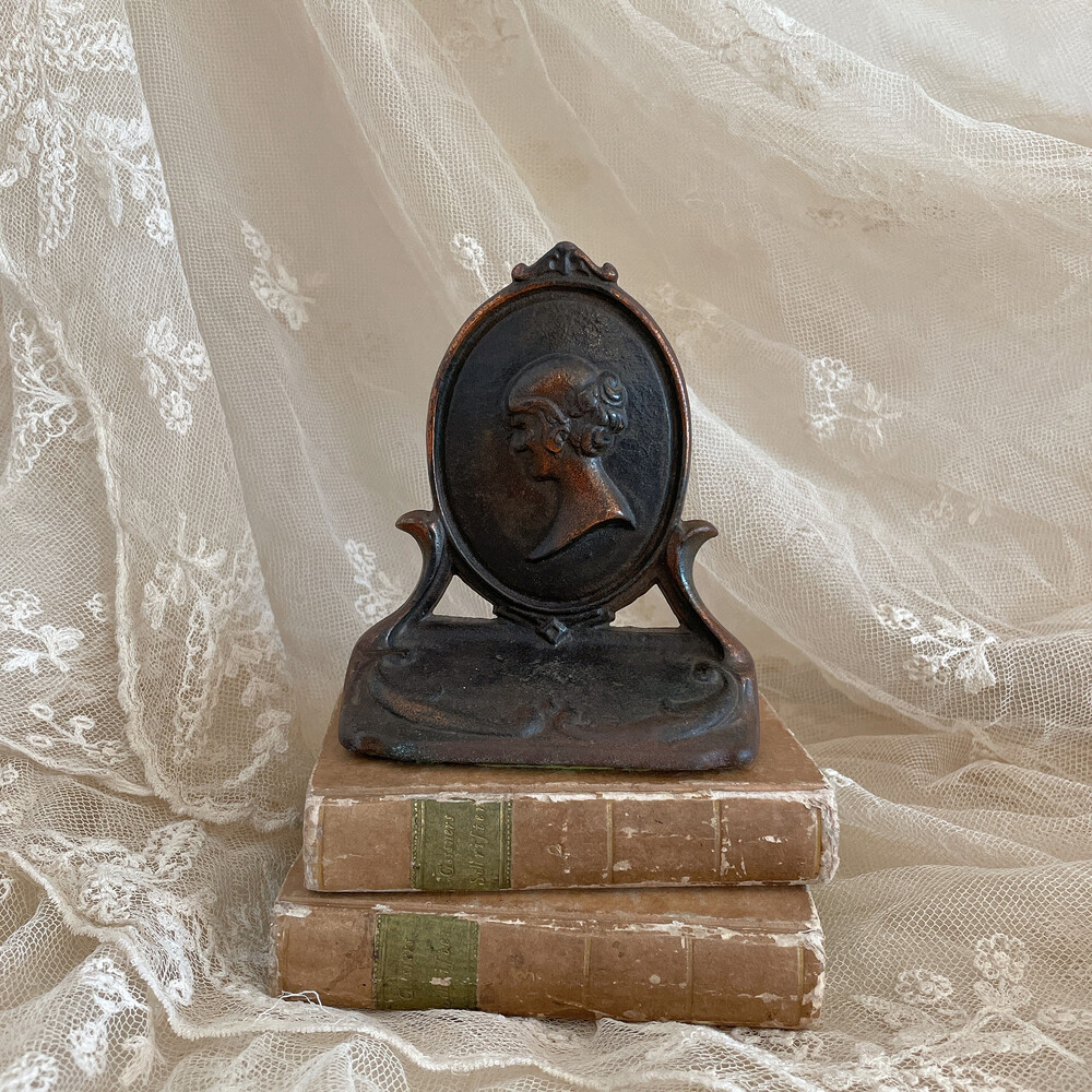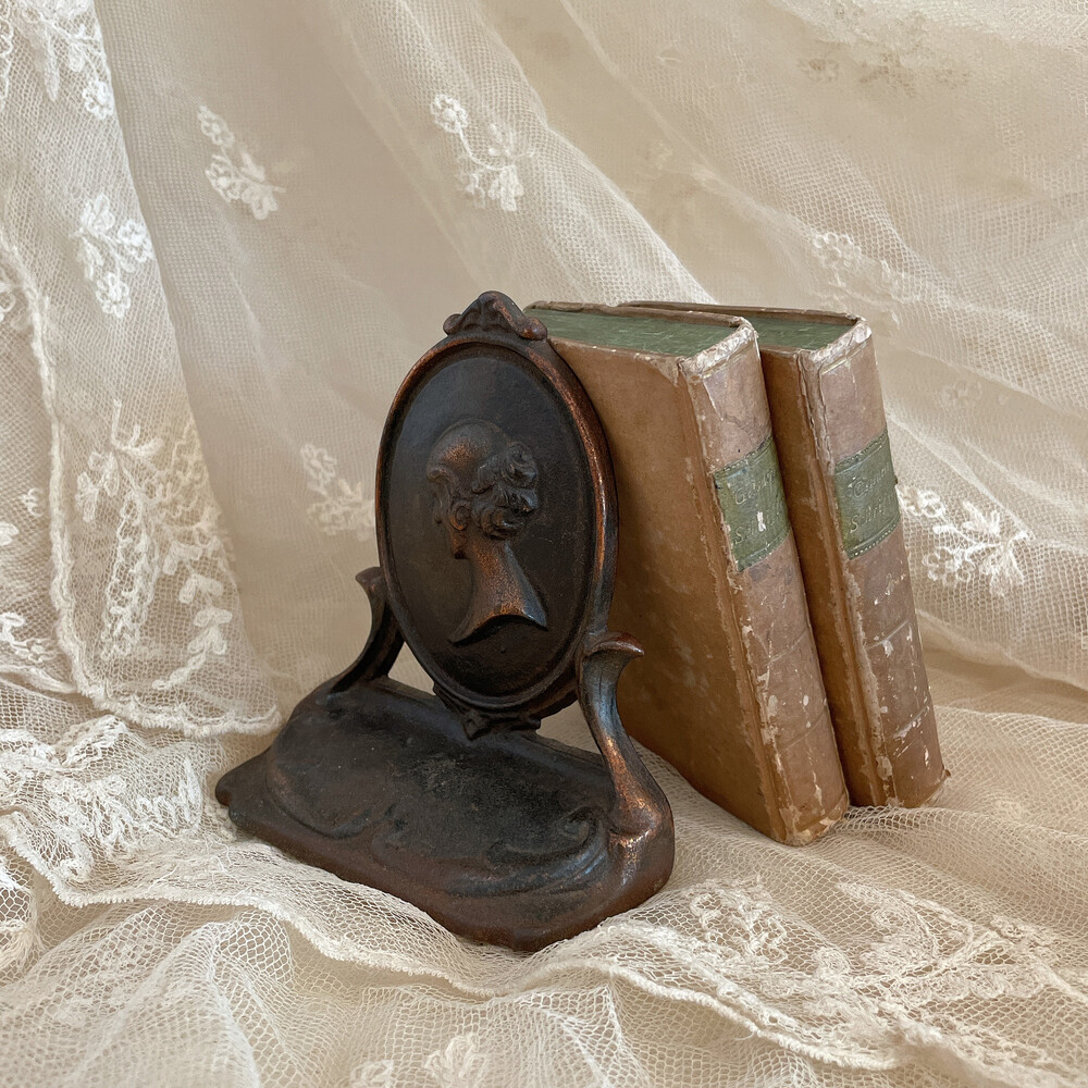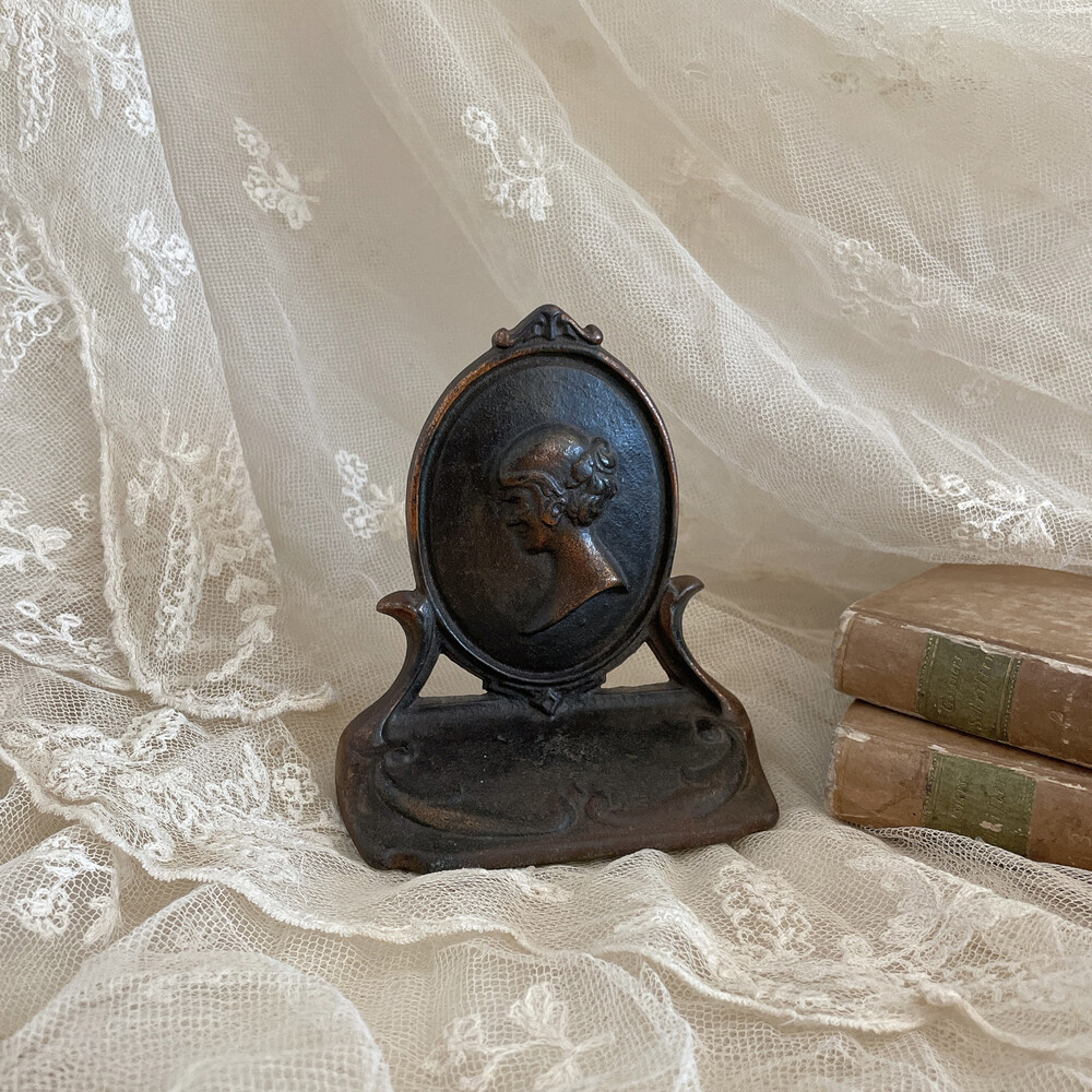 주물로 만들어져 묵직하고 견고한 빅토리안 카메오 북앤드 입니다.
