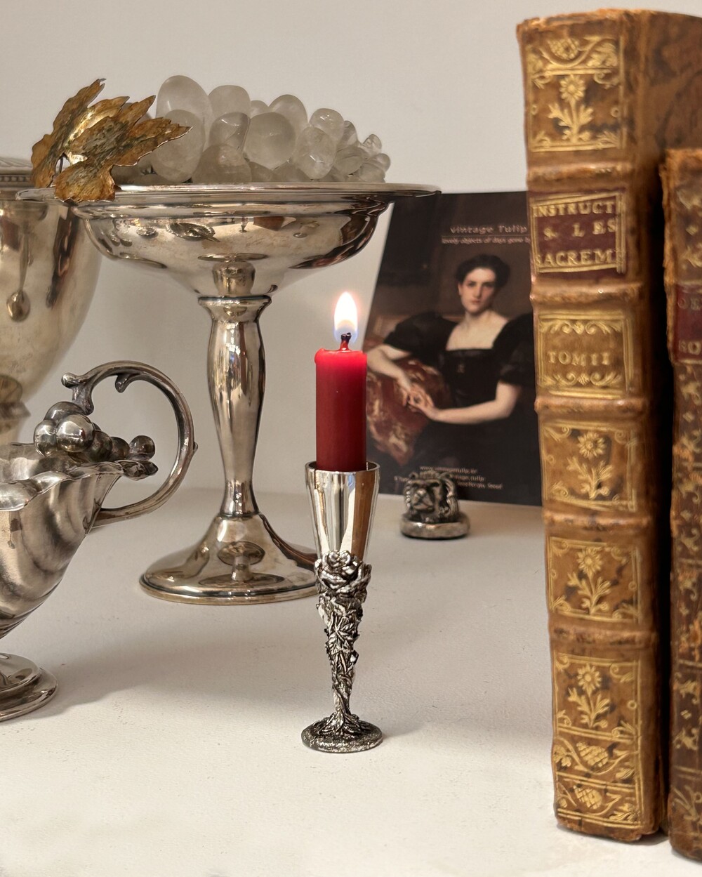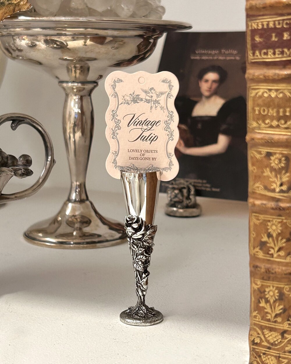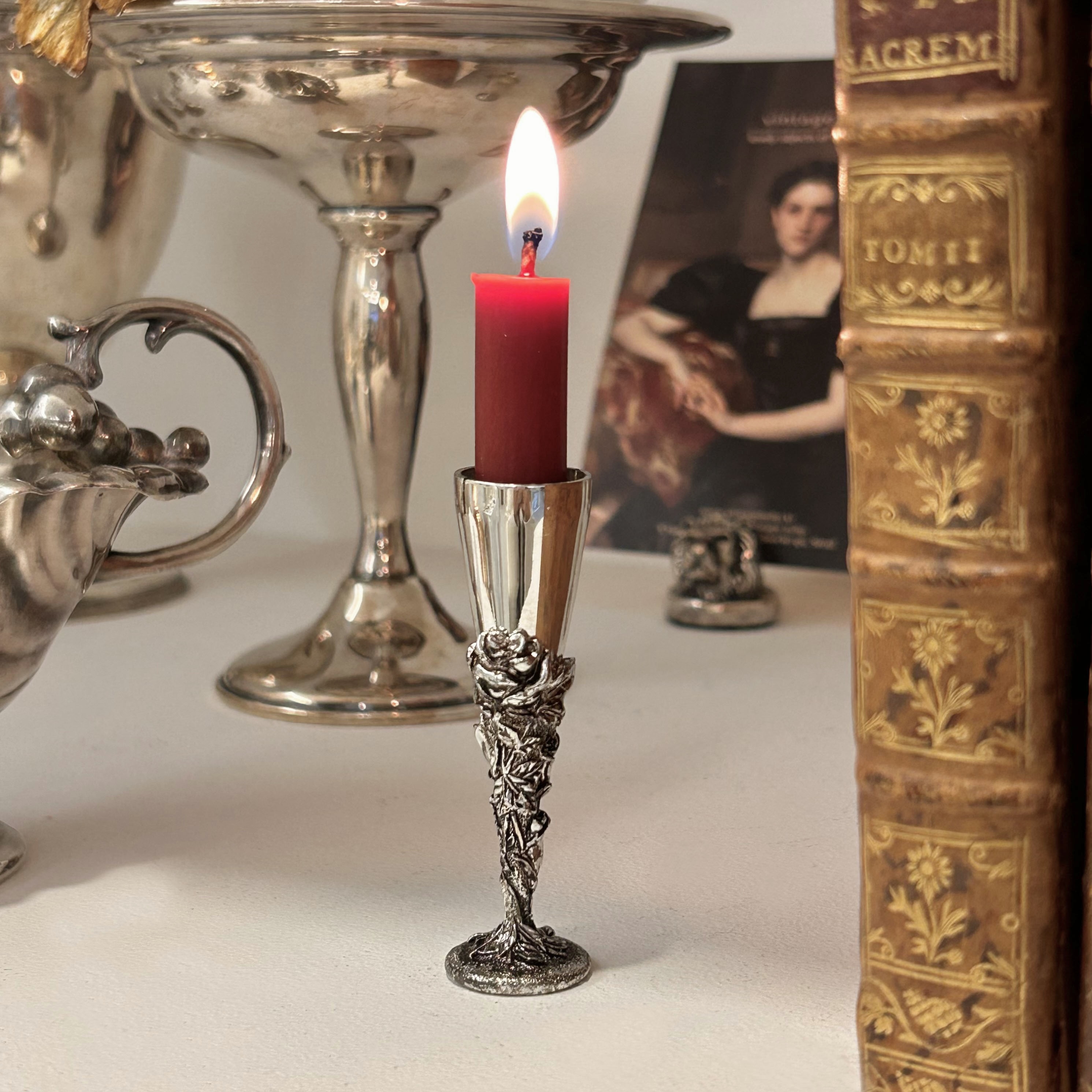 vintage silver mini roses candlestick/memo holder