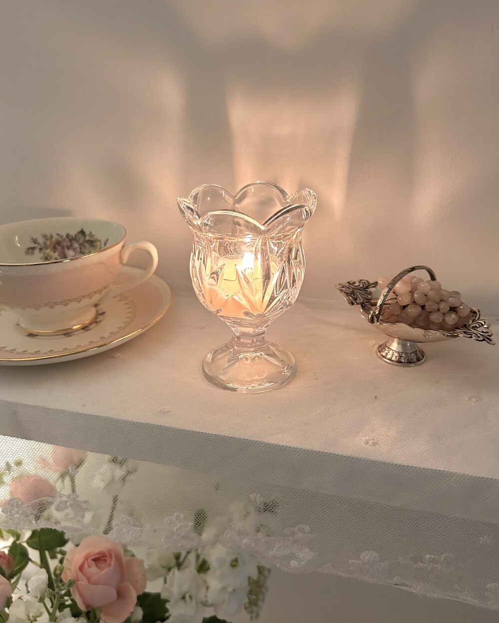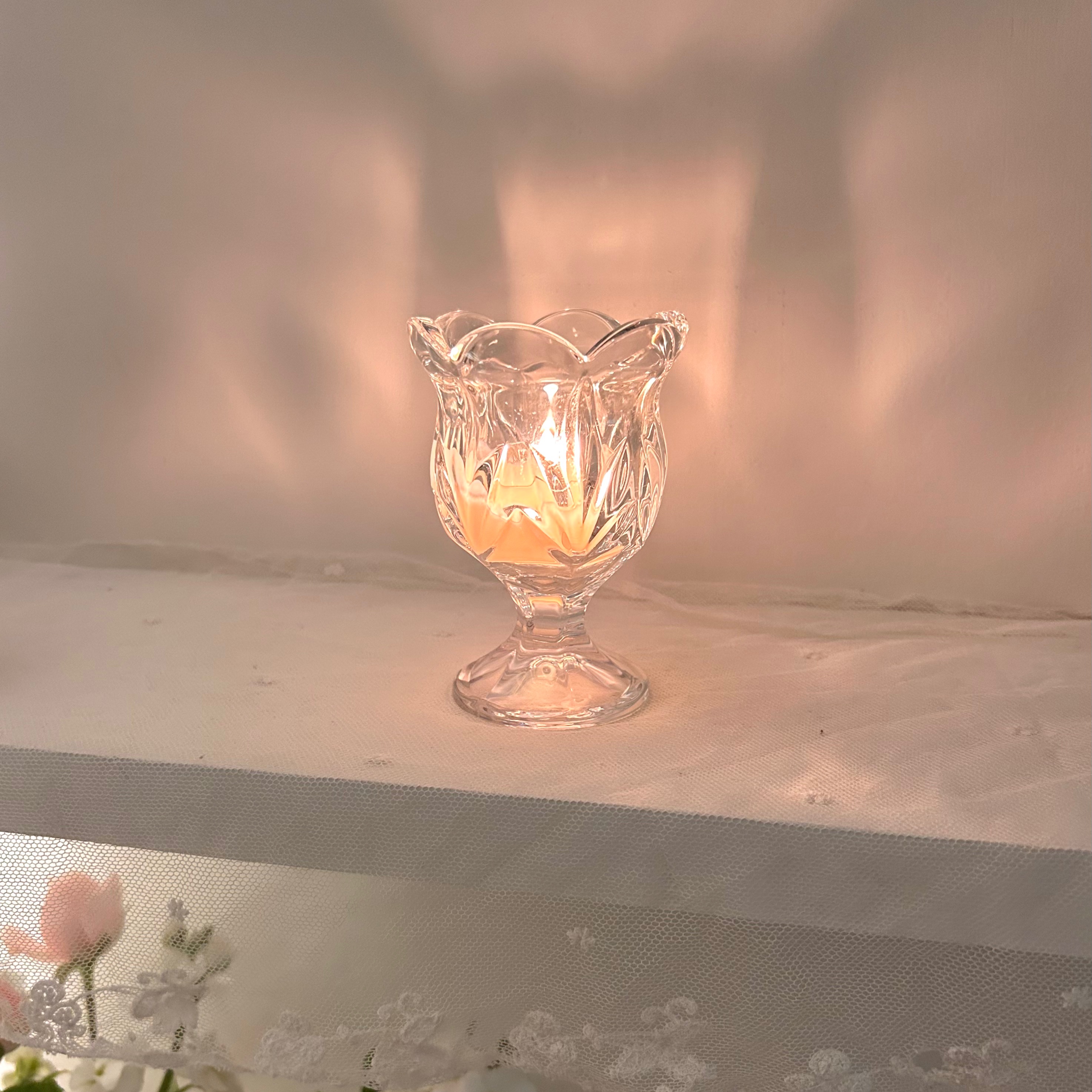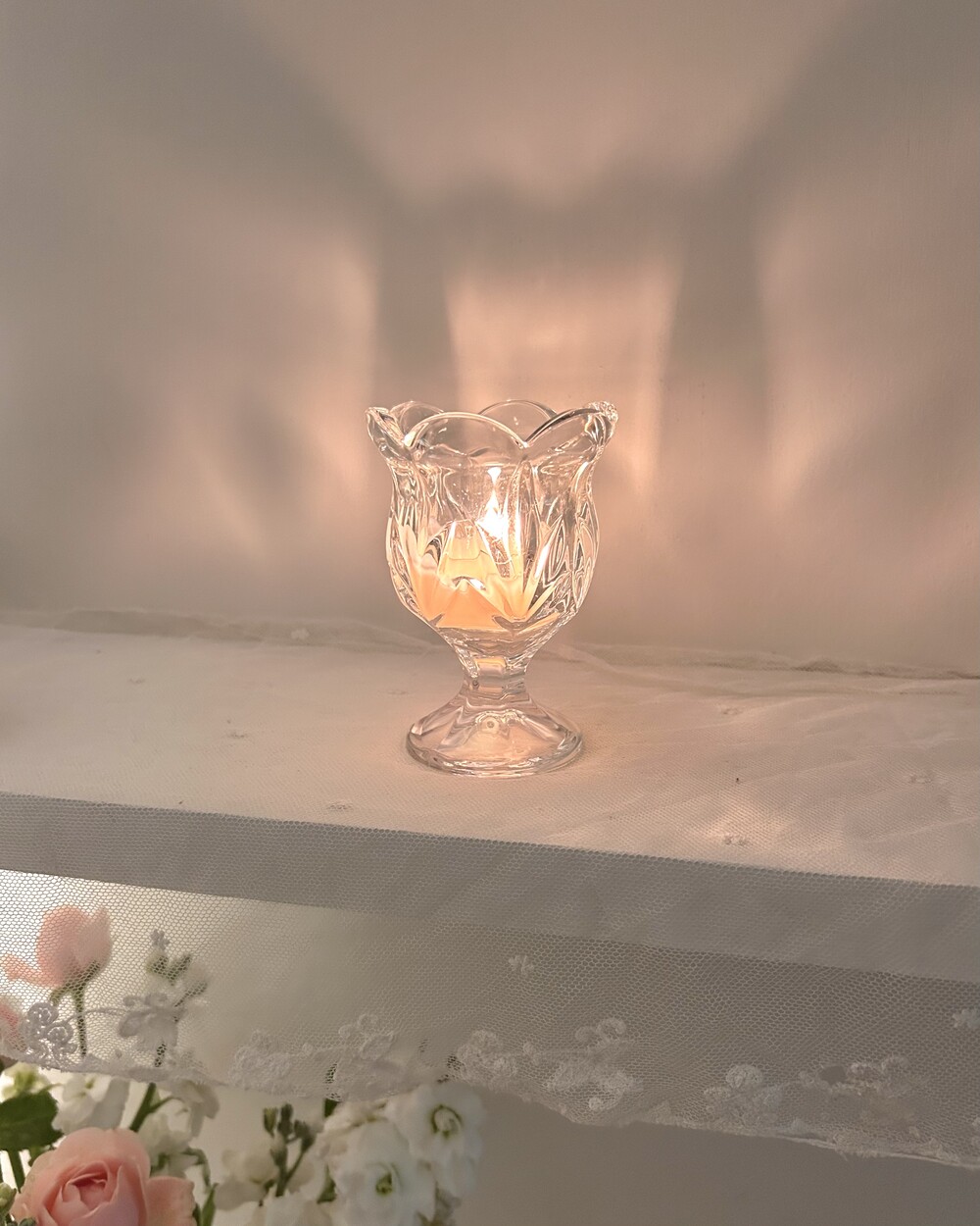 우아한 튤립 쉐입의 빈티지 크리스탈 보티브 홀더 입니다.