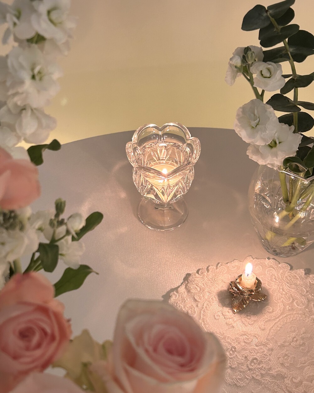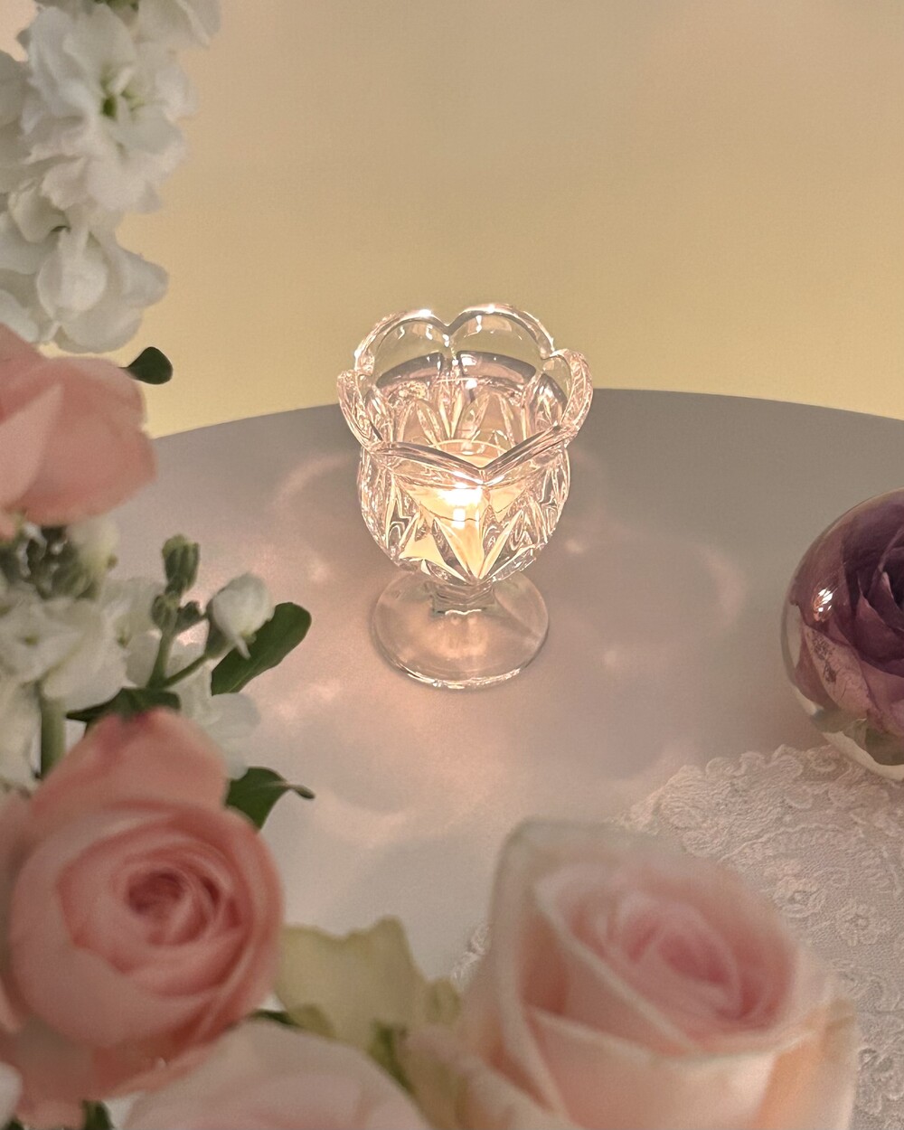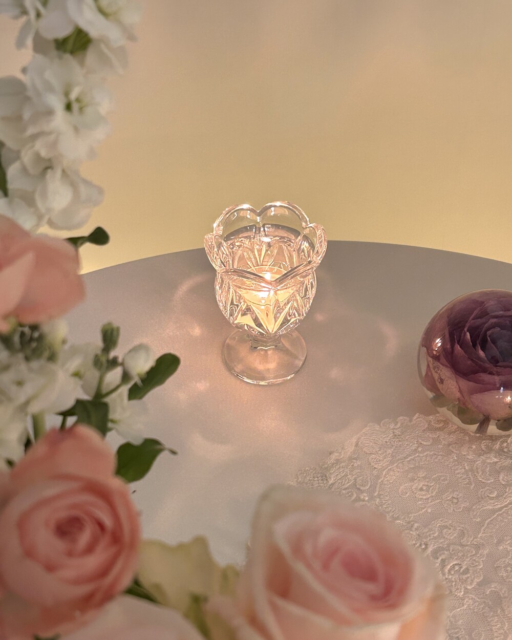 우아한 튤립 쉐입의 빈티지 크리스탈 보티브 홀더 입니다.