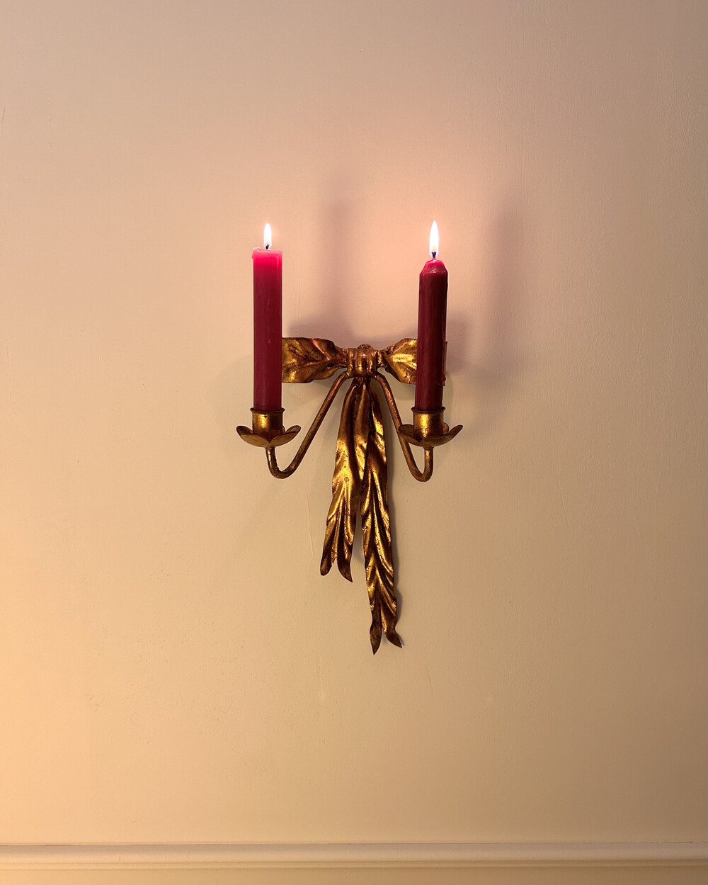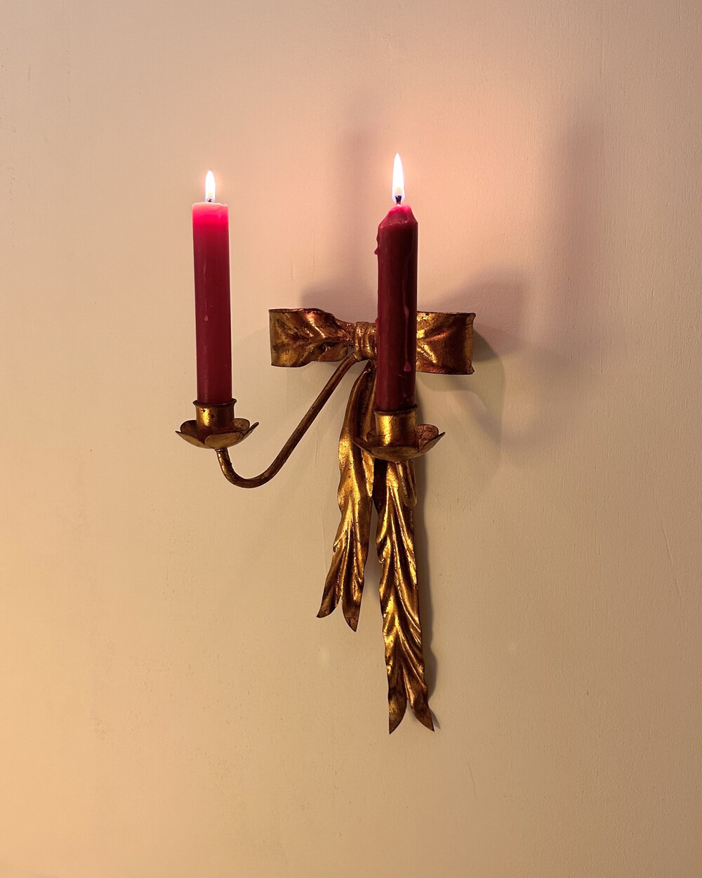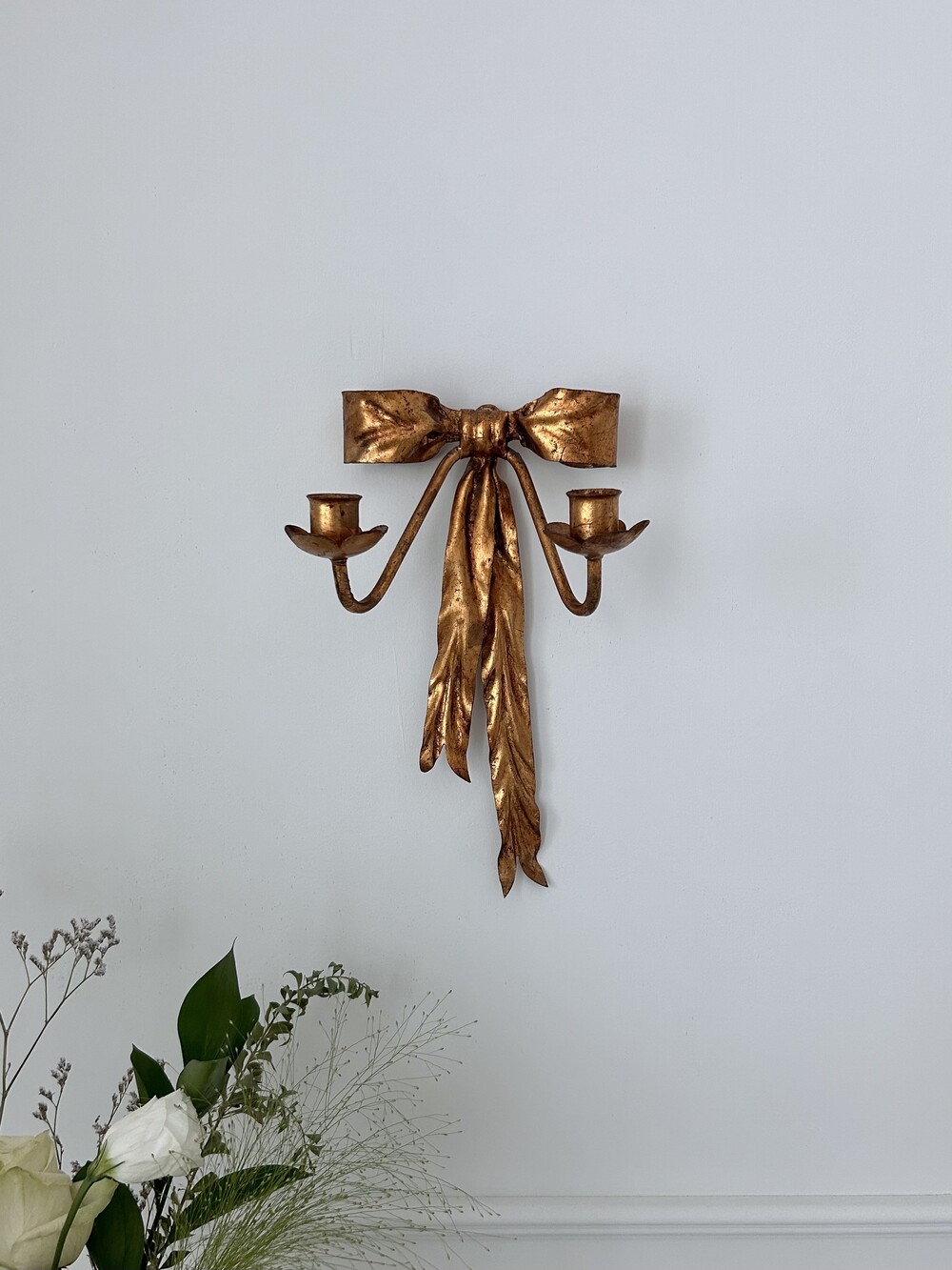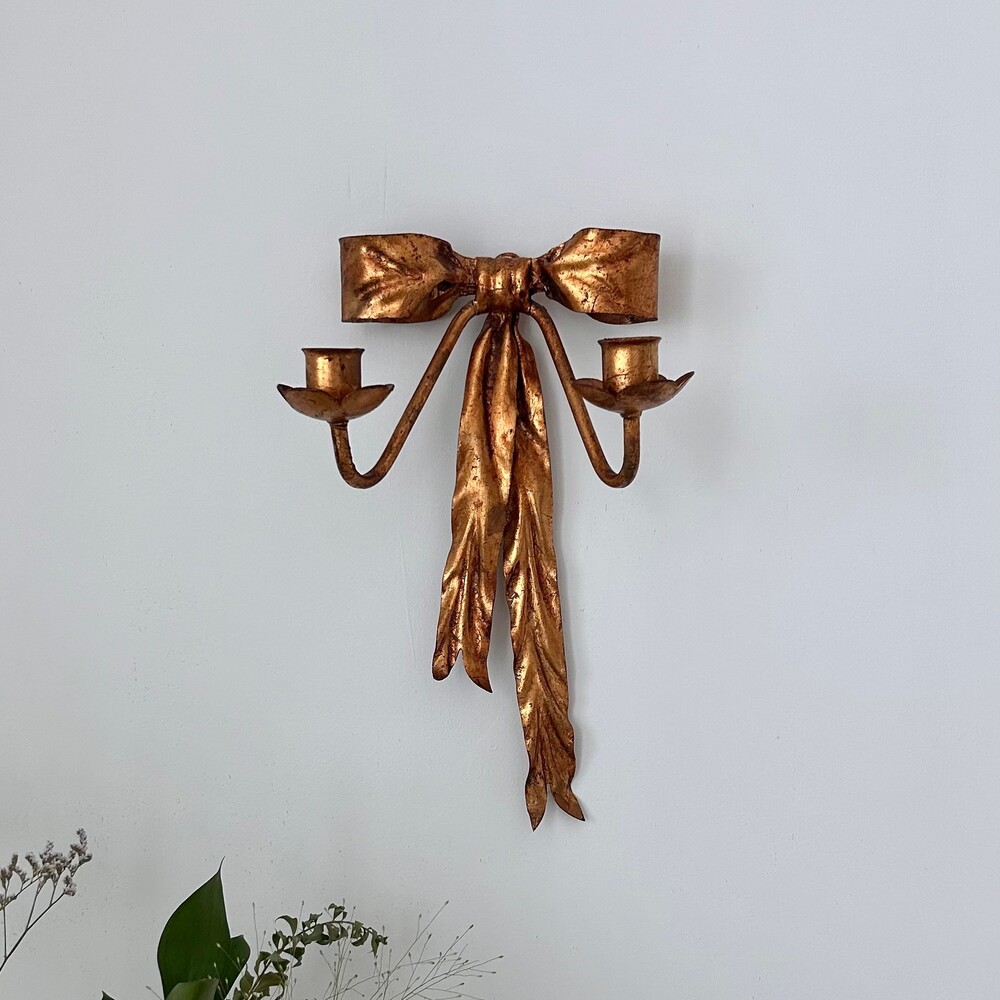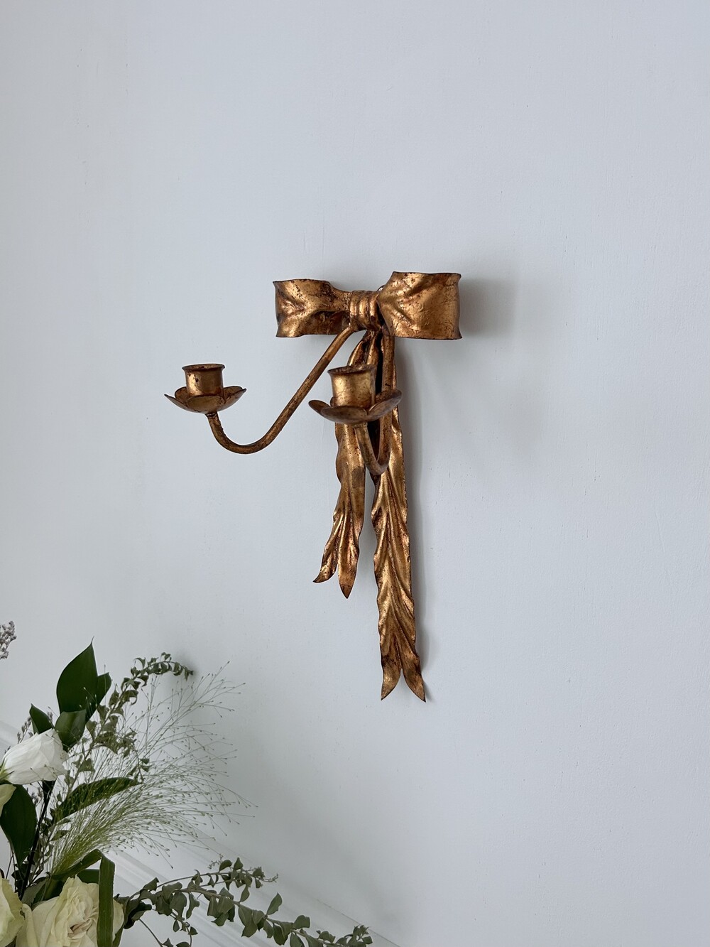 1930s vintage gilt tole ribbon wall candle holder, Italy