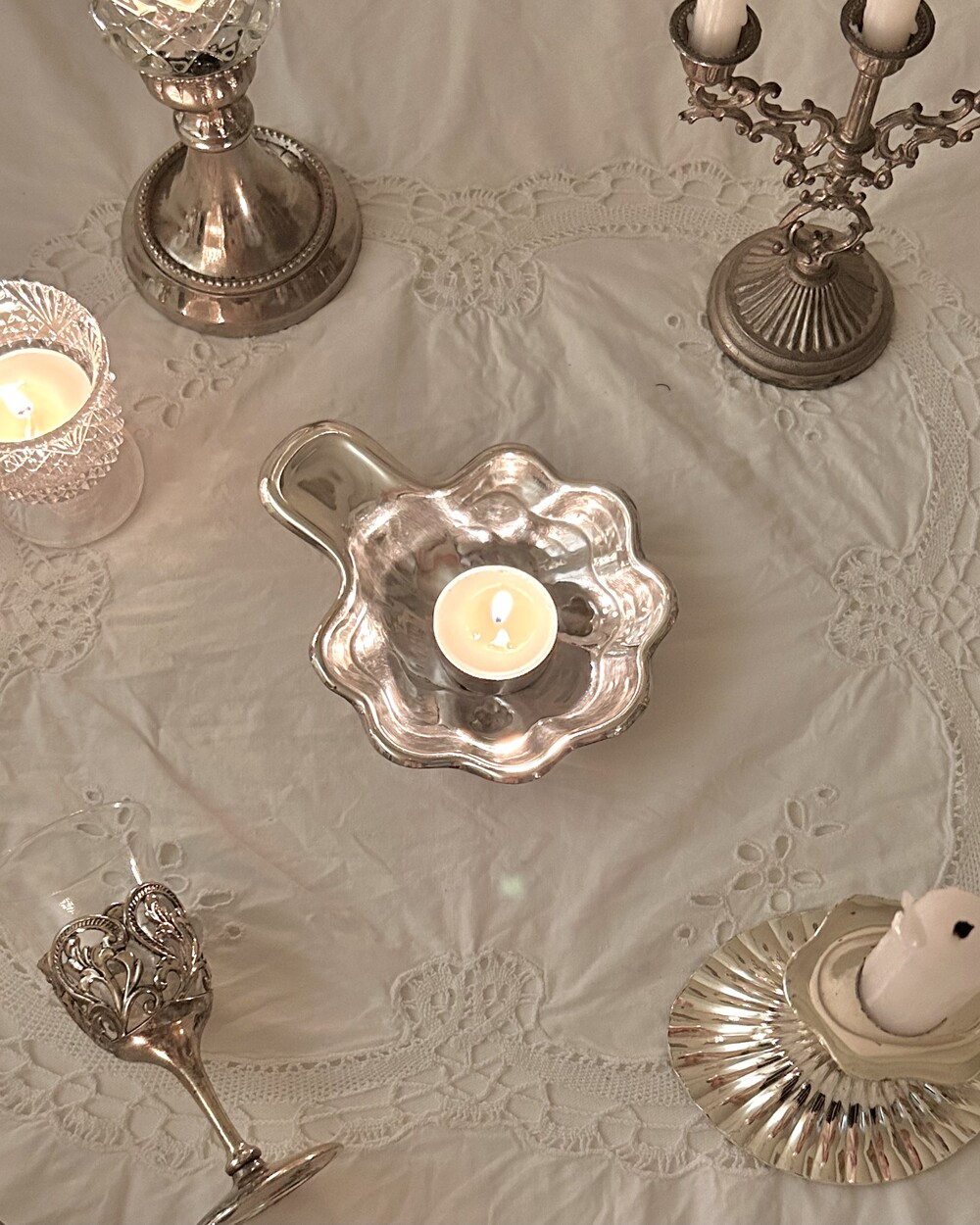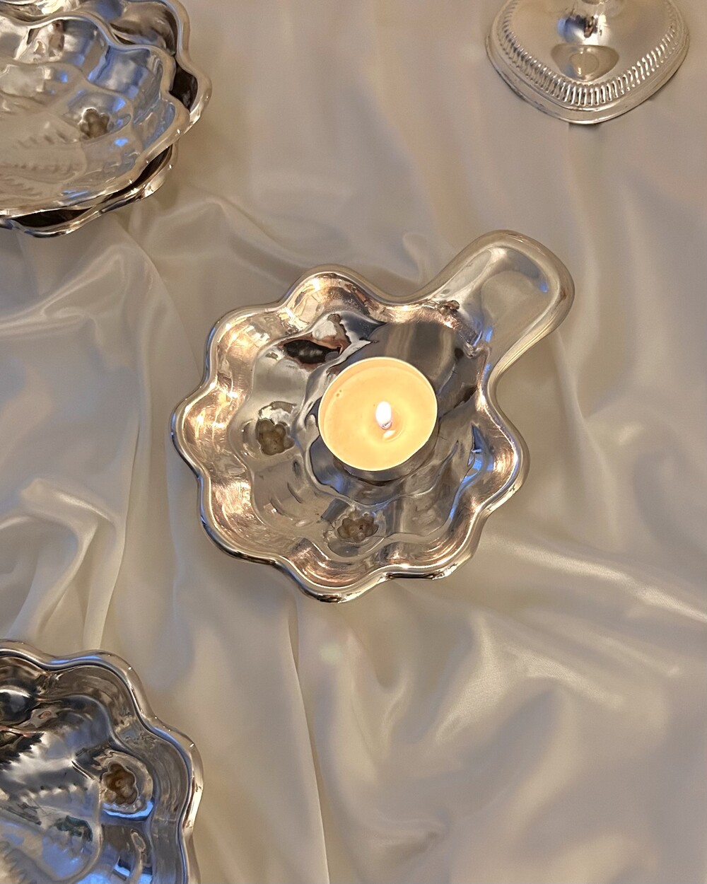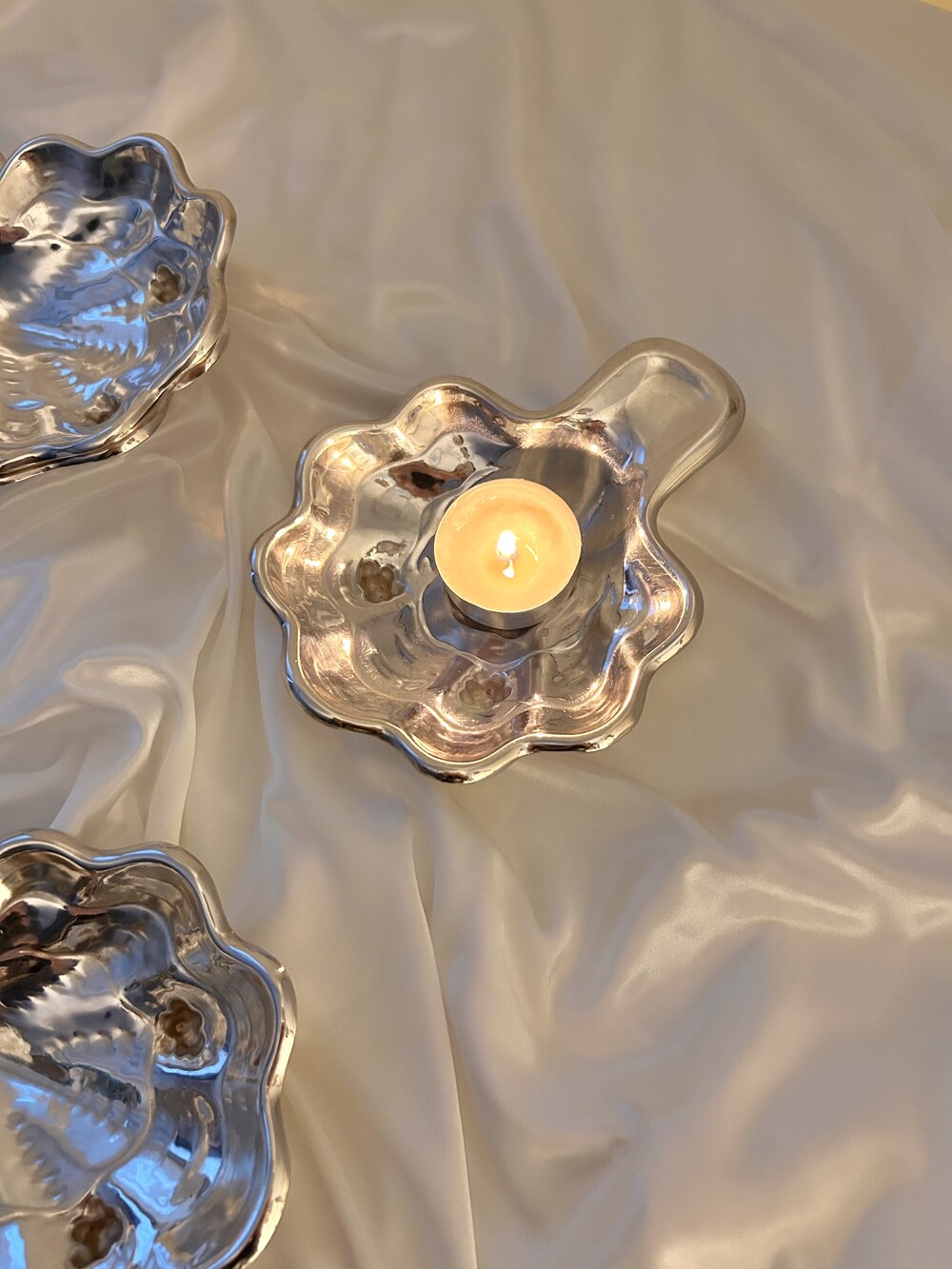 티라이트 캔들을 담으면 쉘 패턴에 빛이 반사되어 영롱하게 빛나는 아름다운 촛대가 되어주어요.