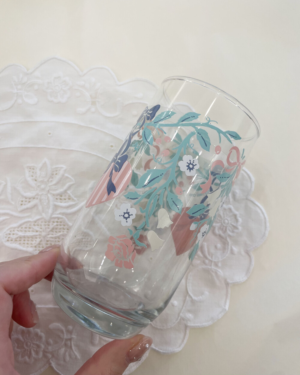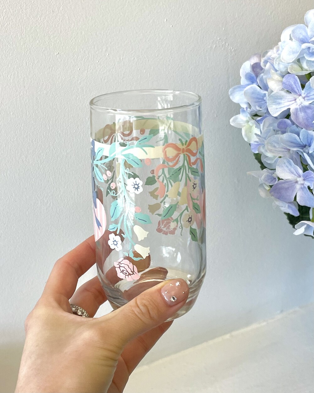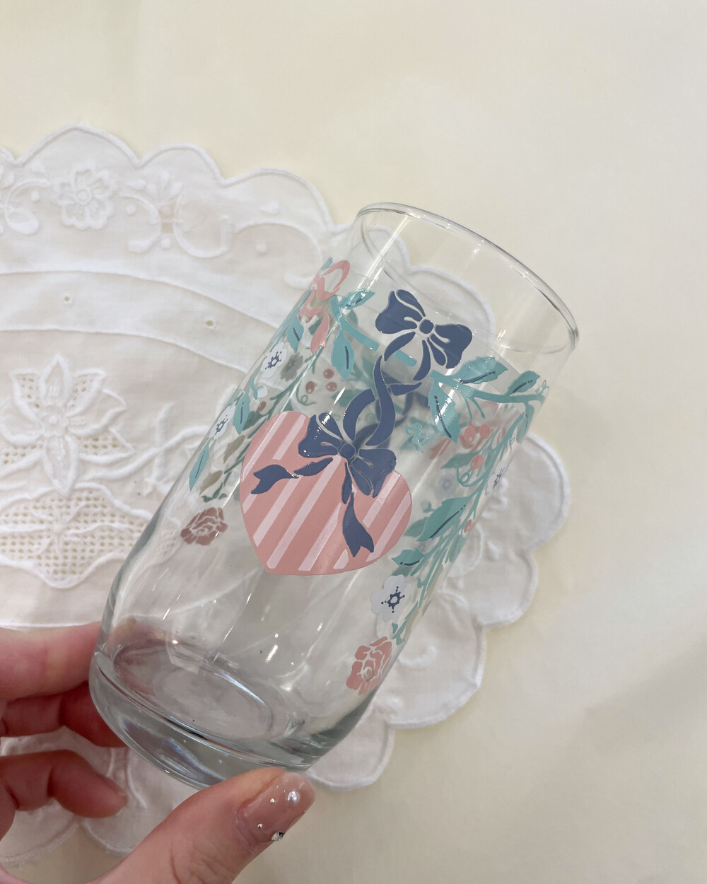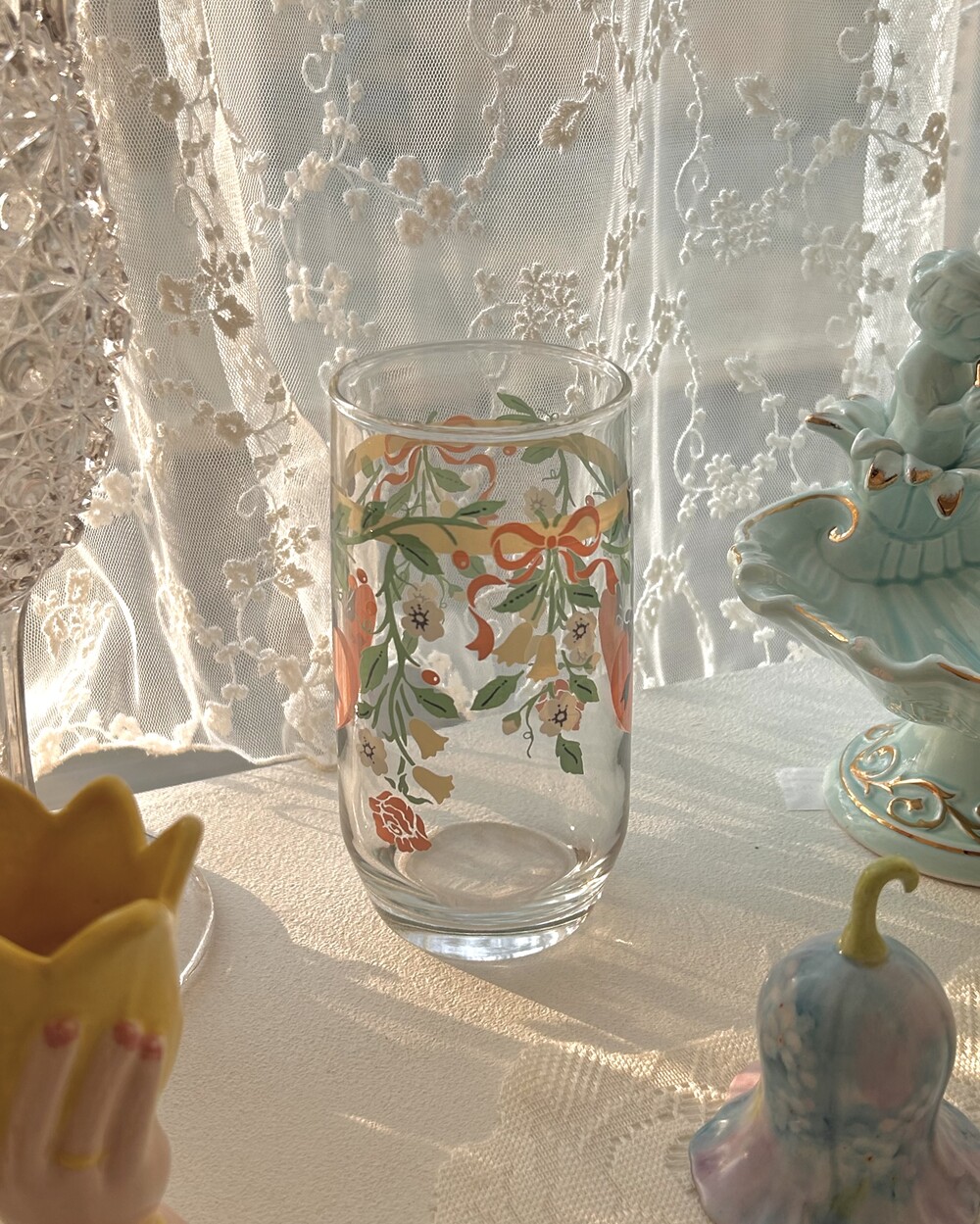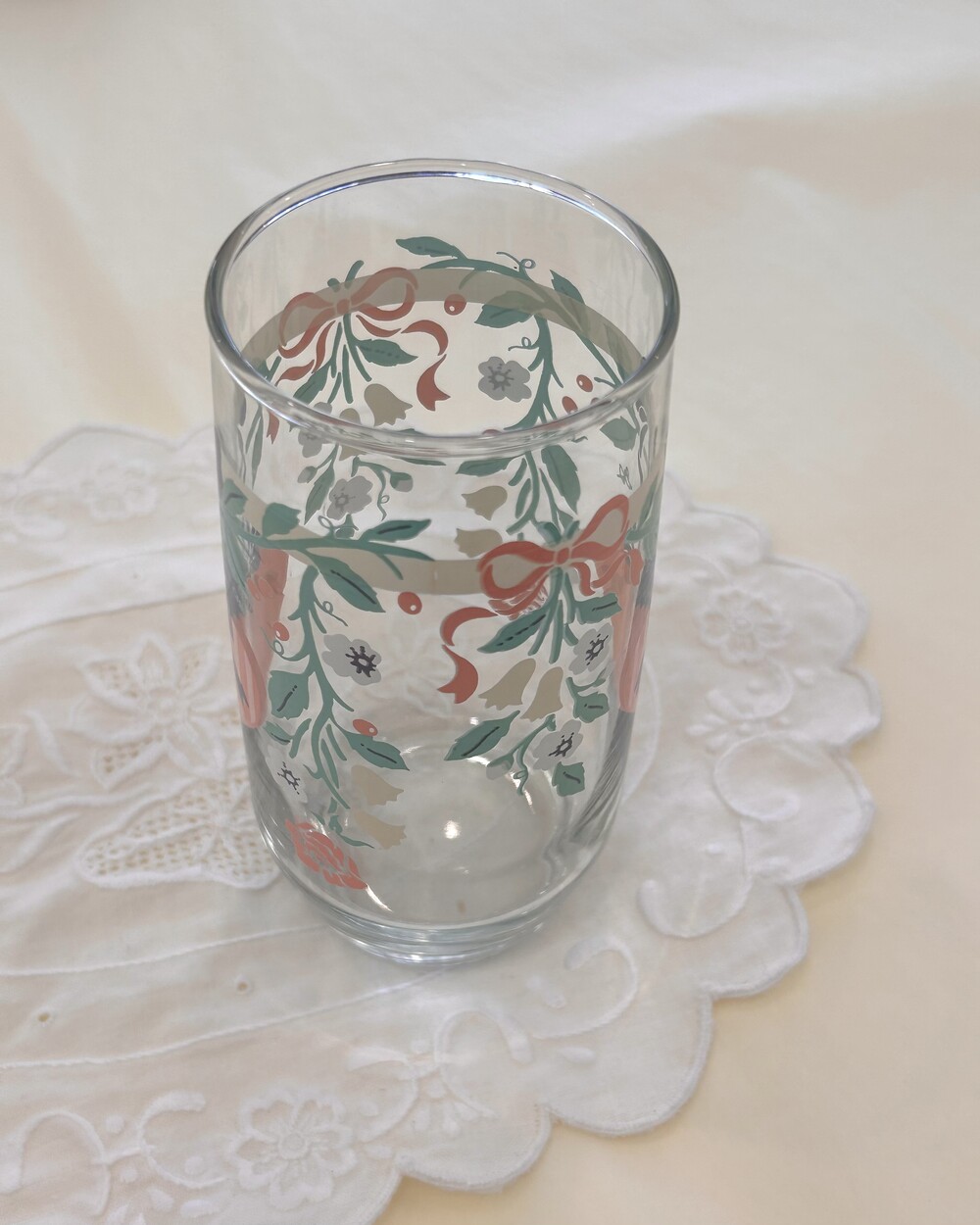 vintage pastel rose ribbon juice glass