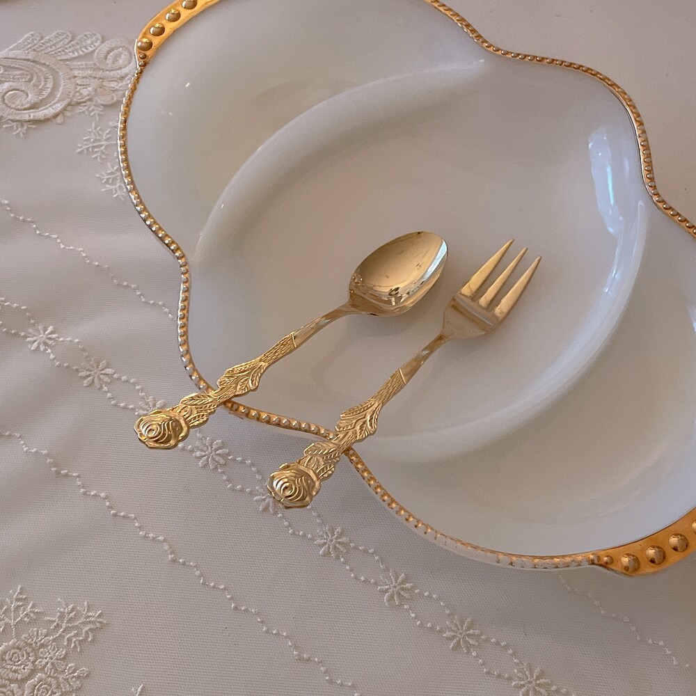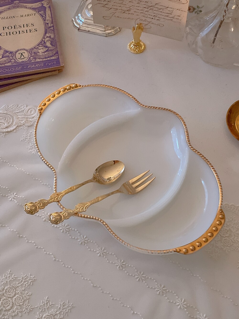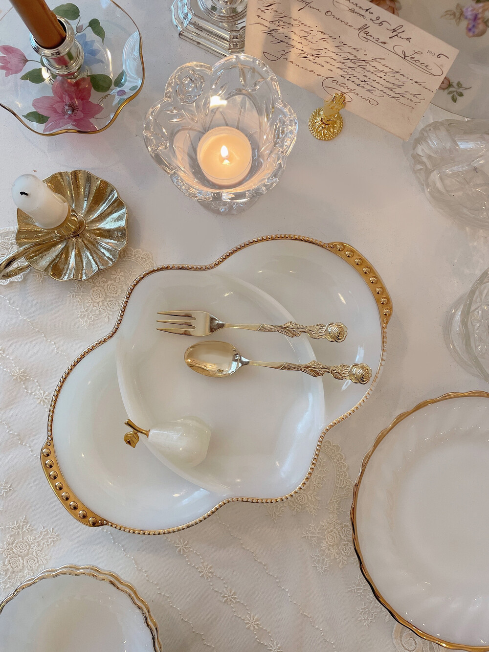 뽀얀 밀크글라스에 22k 골드로 장식된 도트 테두리가 매력적이에요.