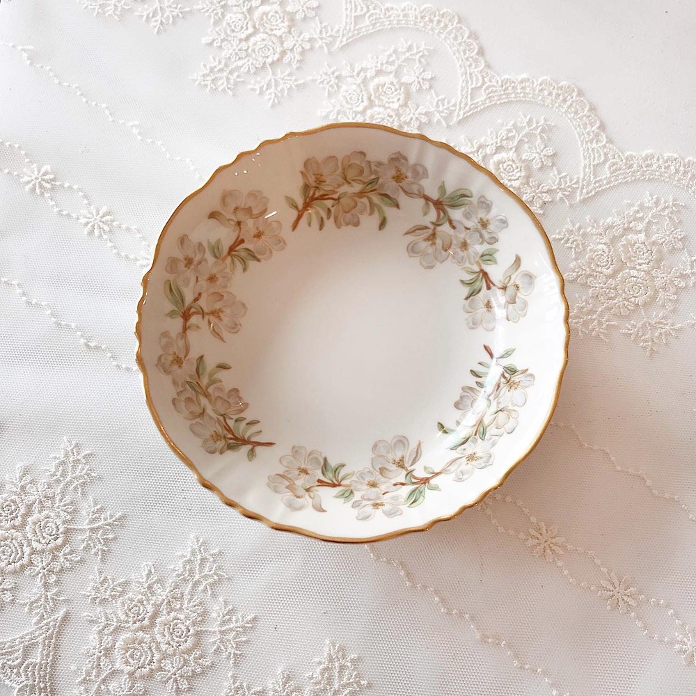 물결 모양의 골드림과 차분한 컬러의 플로럴 패턴이 더해져 매력적이에요.